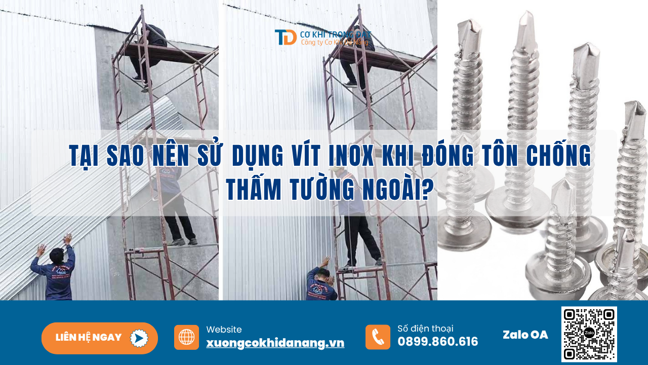 Giải mã lý do vít Inox là lựa chọn số 1 khi đóng tôn chống thấm tường ngoài tại Đà Nẵng. Bí quyết giúp công trình bền bỉ trên 20 năm từ Cơ Khí Trọng Đạt.
