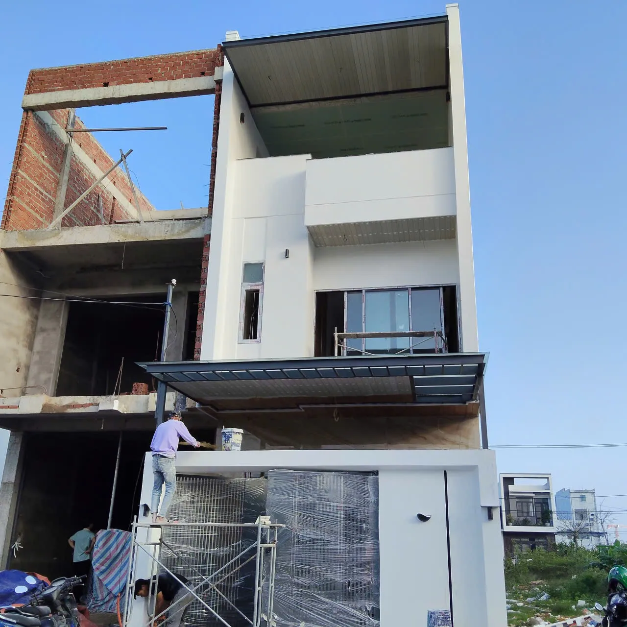 Công trình được thiết kế phù hợp với khuôn viên nhà phố, giúp gia chủ dễ dàng mở – thu bạt khi cần, tạo không gian sinh hoạt, để xe hoặc tiếp khách ngoài trời tiện lợi.