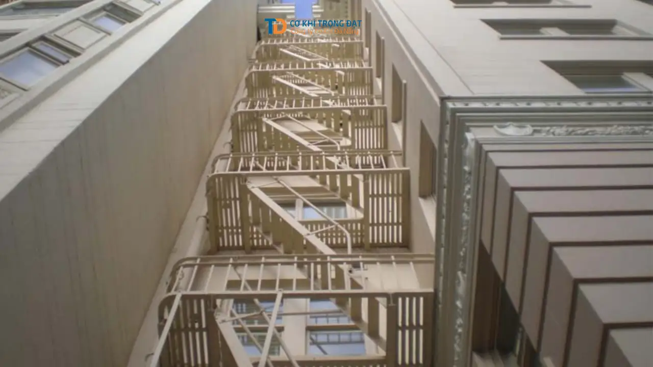 Lưu ý: Bên cạnh thang thoát hiểm, việc kết hợp đóng tôn chống thấm tại Đà Nẵng cho mặt tường thang là giải pháp kép giúp bảo vệ tường nhà khỏi thấm dột do khoan cấy bulong thi công thang.
