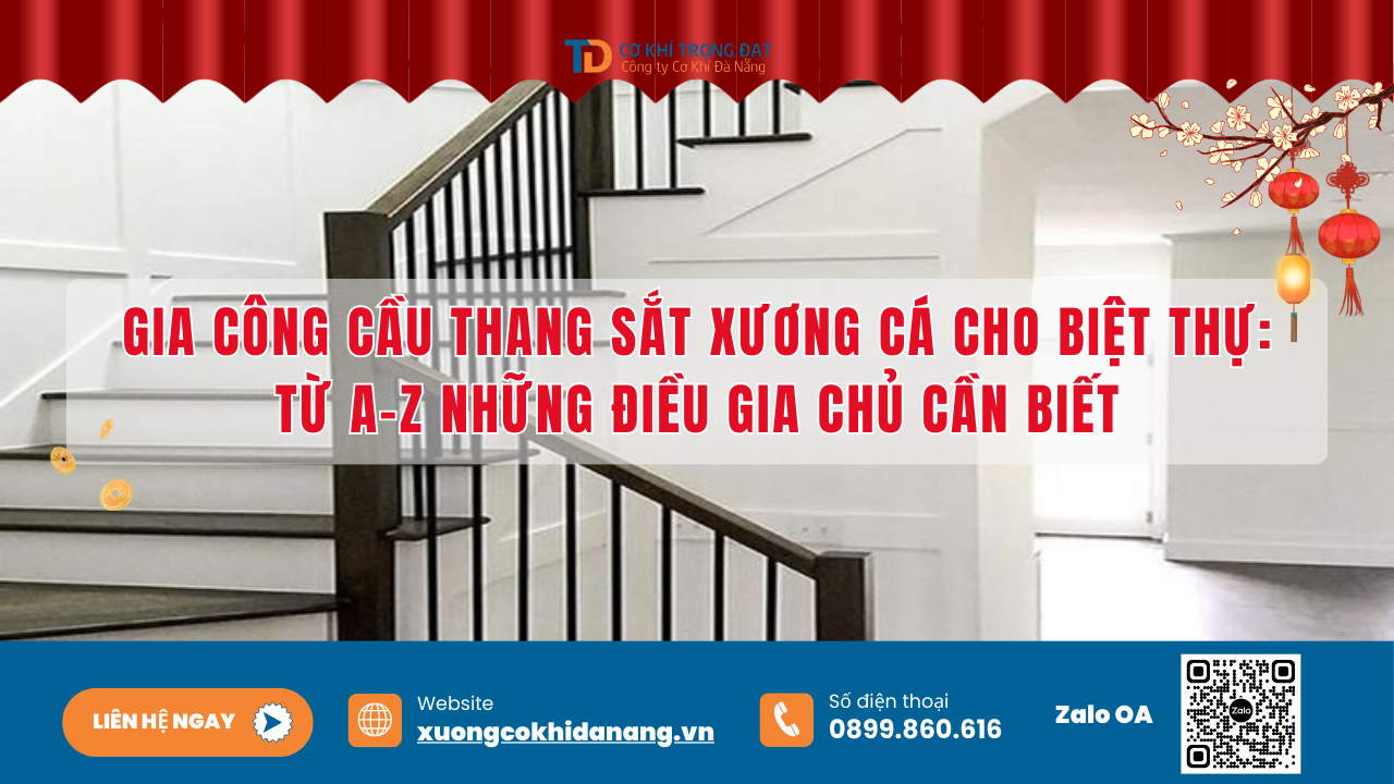 Gia công cầu thang sắt xương cá cho biệt thự: Từ A-Z những điều gia chủ cần biết